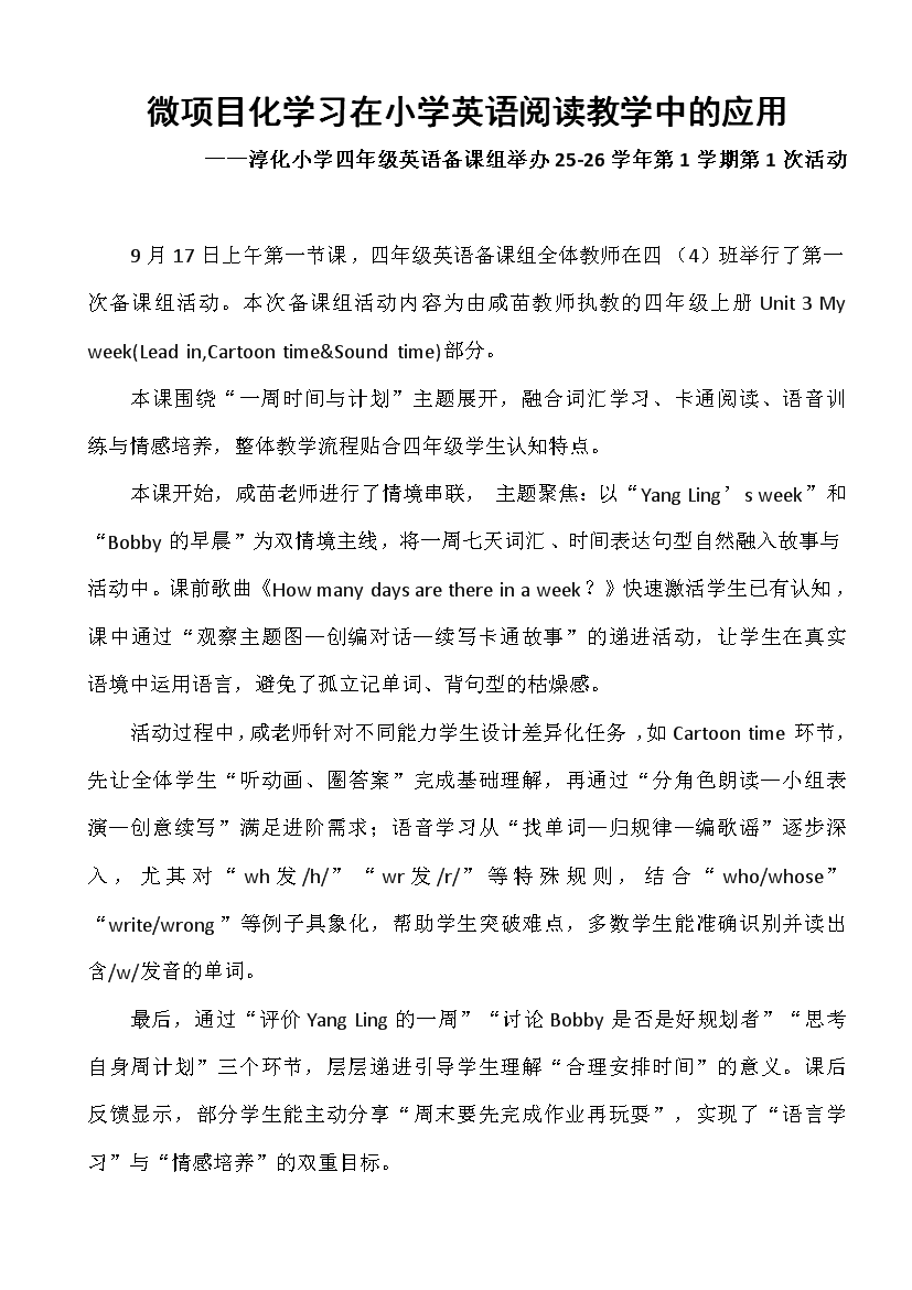 【教研·四英】微项目化学习在小学英语阅读教学中的应用
