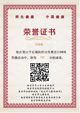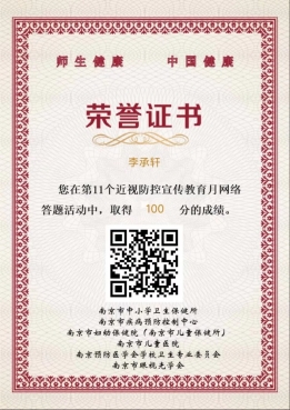 9月17日,保健室发动师生参与南京市中小学卫生保健所等部门联合发起的网络知识答题活动,师生在答题中学习防近爱牙和保护脊柱的知识,达到多病共防的目的。同时,保健室在走廊放置了“防近”相关展板,让过路学生可以观看以加强护眼知识。