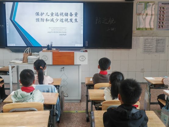 9月23-26日,保健室联合德育处开展了2025年秋季学期防近主题班会。各班主任利用班会时间给同学们讲解了近视的危害、什么是远视储备量以及保护眼睛的方法,强调了坐姿正确对同时保护视力和脊柱的重要性。