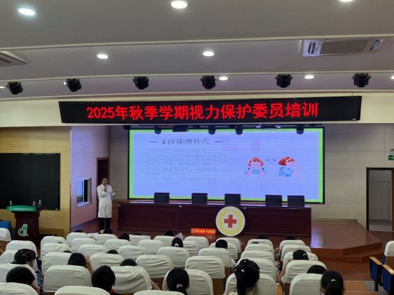 9月26日下午,保健室在阶梯教室召开了2025年秋季学期学生视力保护委员培训会,全校43个班每个班选出2名视力委员,由保健室的徐老师给同学们培训了视力委员的职责,同时讲解了眼保健操的动作要点。