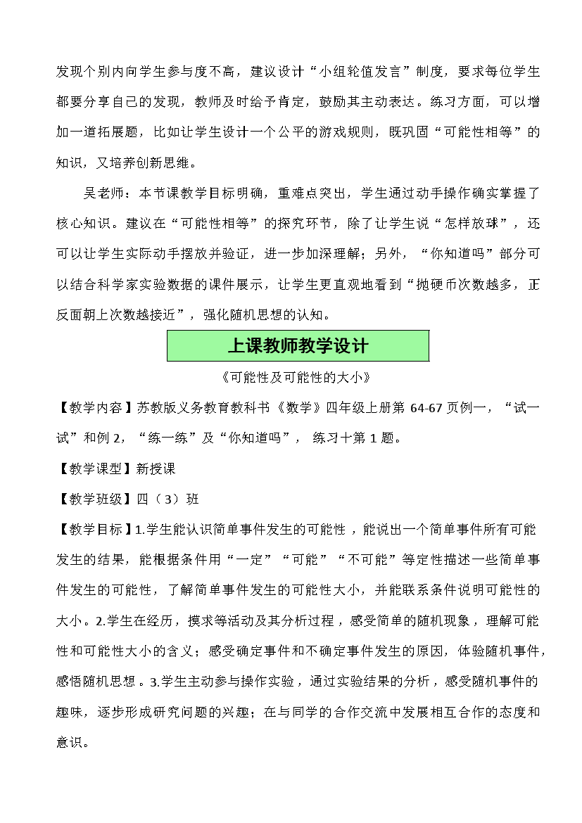 【教研·四数】趣味实验探真知 玩转数学可能性