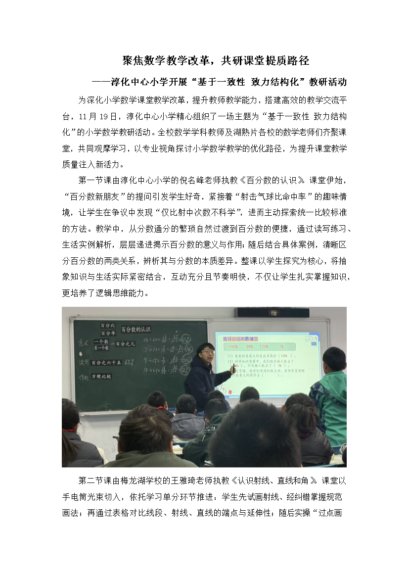 【淳小.教研】聚焦数学教学改革,共研课堂提质路径 ——淳化中心小学开展“基于一致性 致力结构化”教研活动
